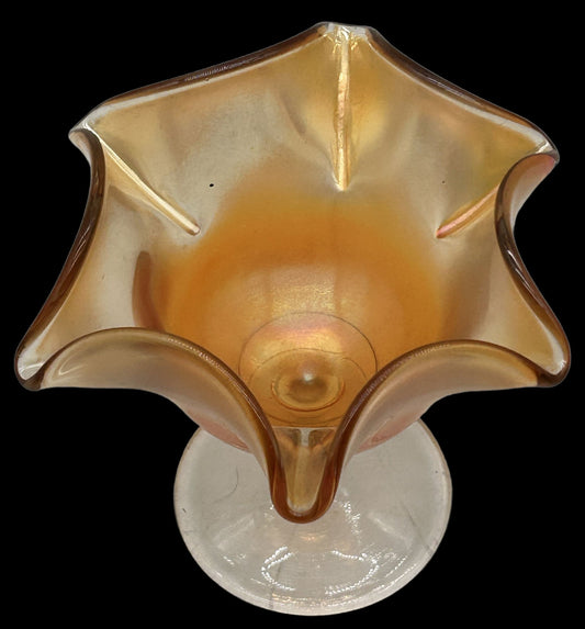 250716-25B Marigold Carnival Glass Compote