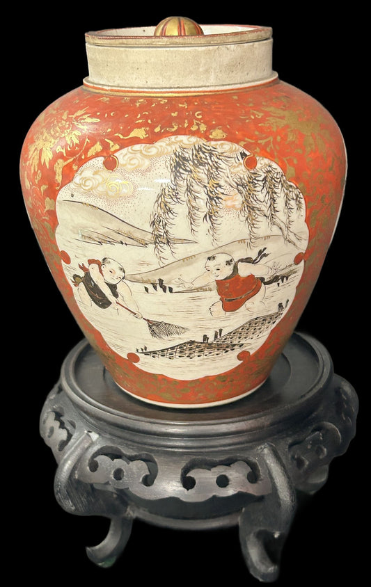 250806-12 Antique Katani Style Meiji Ginger Jar On Stand