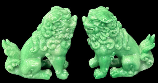 250806-11 Pair Faux Green Jade Foo Dogs
