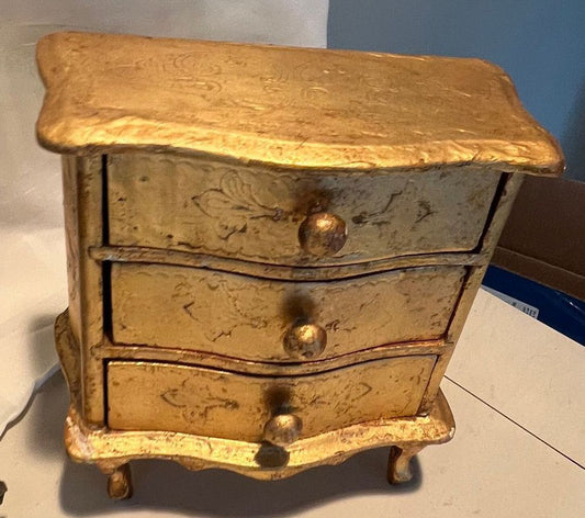 230330-6B Small 3-Drawer Italian-Style Embossed Gilt Jewelry Chest
