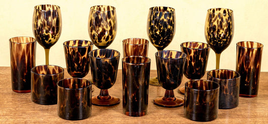 250203-1C Set of 4-Faux Tortoiseshell Stemmed Wine Glasses