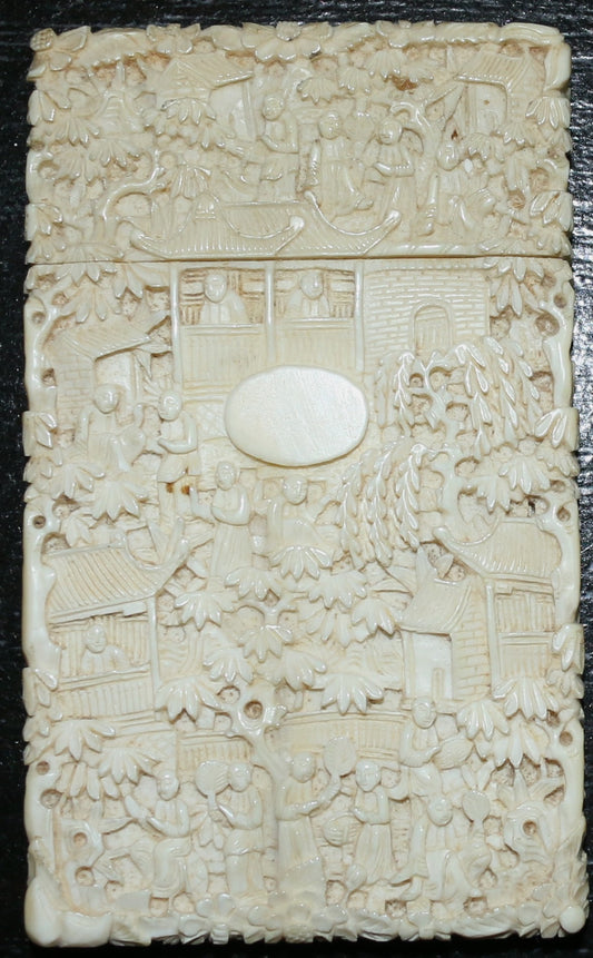 250814-4 Antique Intricately Carved Ivory Calling Card Case