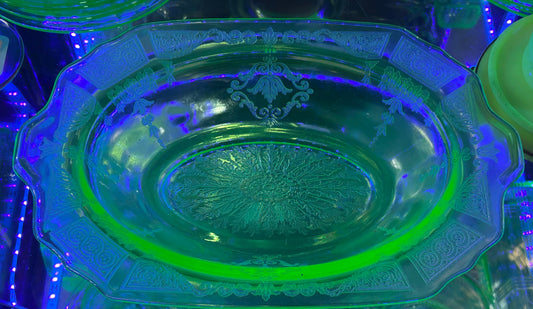 251101-10 Uranium Glass Art Deco Serving Bowl
