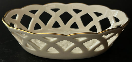 Lenox Ivory Reticulted Oval Basketweave Bowl With Gold Rim