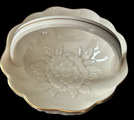 Lenox Ivory Peony Handled Basket