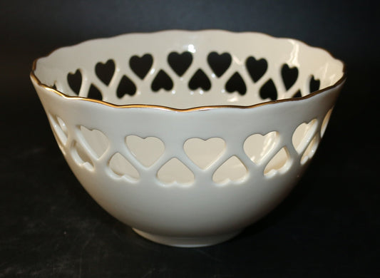Lenox Ivory Reticulted Heart Collection Bowl With Gold Rim