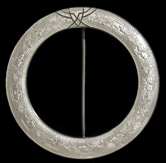 Sterling Art Deco Guilloche 2" Diam. Circle Brooch In Presentation Case
