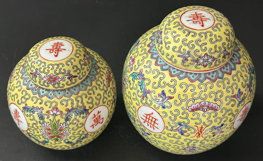 260107-1 Pair Chinese Famille Jaune Lidded Ginger Jars