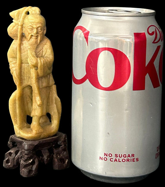 260107-3A Chinese Soapstone Fisherman 5"H Figurine