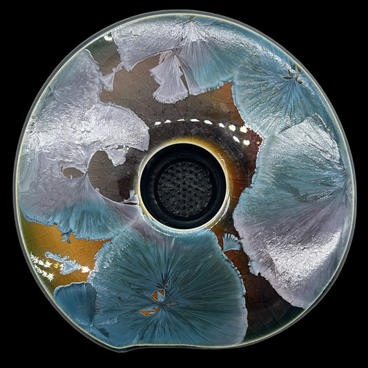 260211-12 Crystaline Ikebana Floral Pottery Vase With Built-In Frog