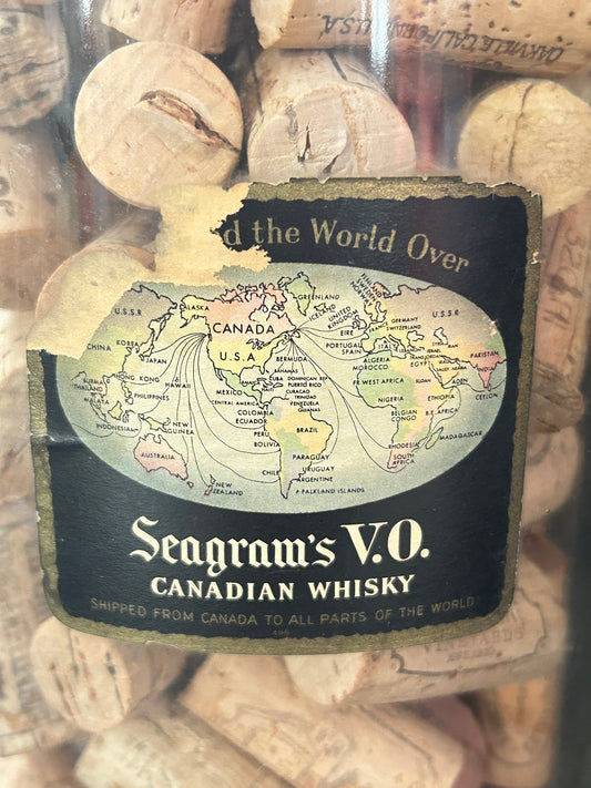 260408-17 Huge Seagrams V.O. Canadian Whisky Bottle Filled With Corks