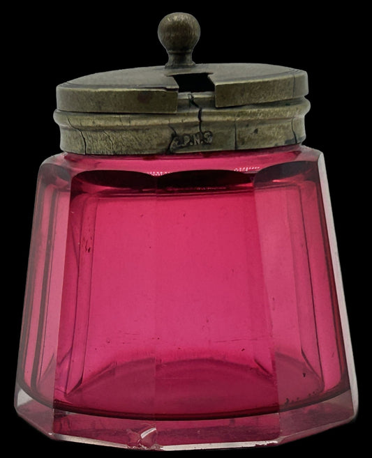 260408-22 Cranberry Glass Mustard Pot With EPNS Lid