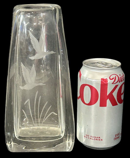 260408-25 Etched Lead Crystal Vase With Water Fowl