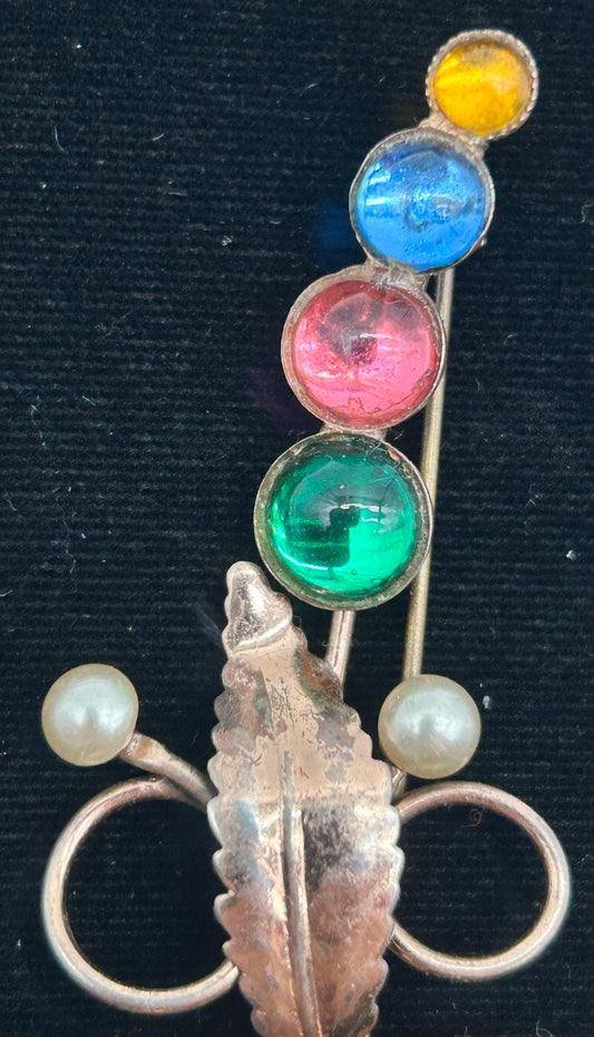 250423-10 VIntage Wilcox Sterling Vermeil Rhinestone Brooch