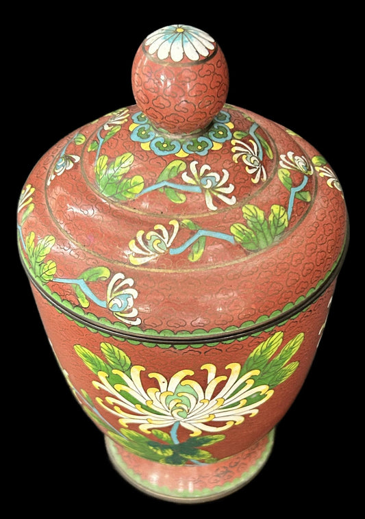 250806-13 Antique Chinese Cloisonne Lidded Jar