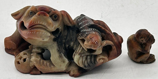 280806-14 Chinese Carved Soapstone Dog & Monkey