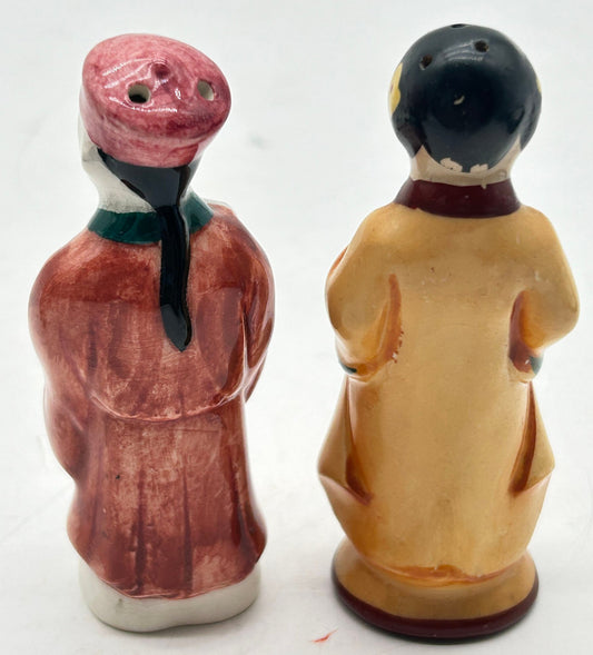 250806-16B Vintage Chinese Themed Salt & Pepper Shakers