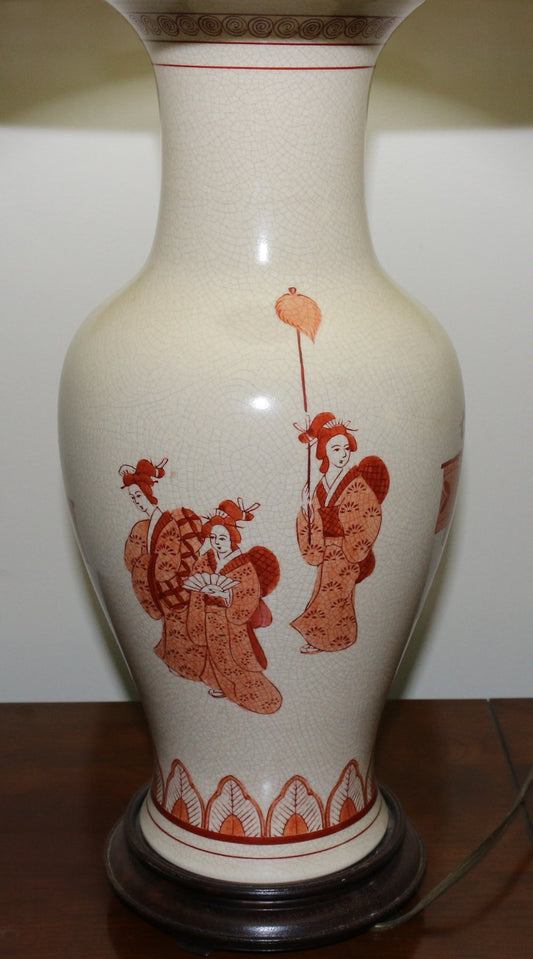 250814-6 Japanese Converted Vase Into Lamp on Wooden Base