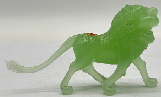 251210-29 Chinese Carved Jade Lion Figurine On Rosewood Stand