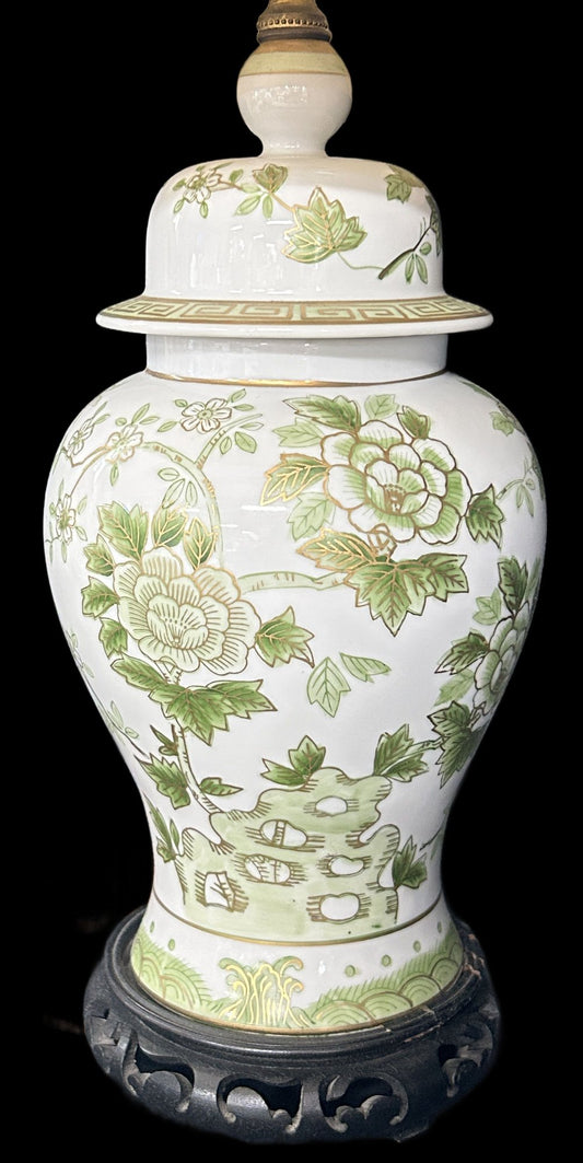 250716-5 Chinese Green/White Ginger Jar Lamp