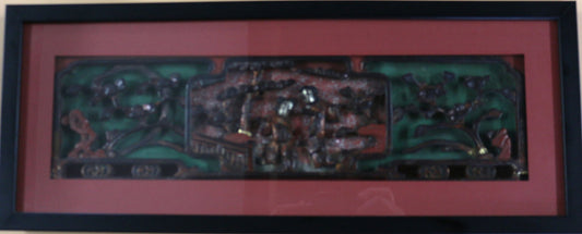 250423-1 Antique Pair Chinese Framed Carved & Gilded Wooden Panels
