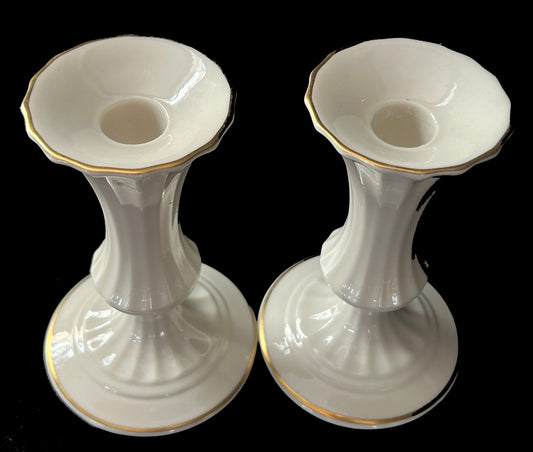 Pair Lenox Ivory Candlesticks With Gold Rims