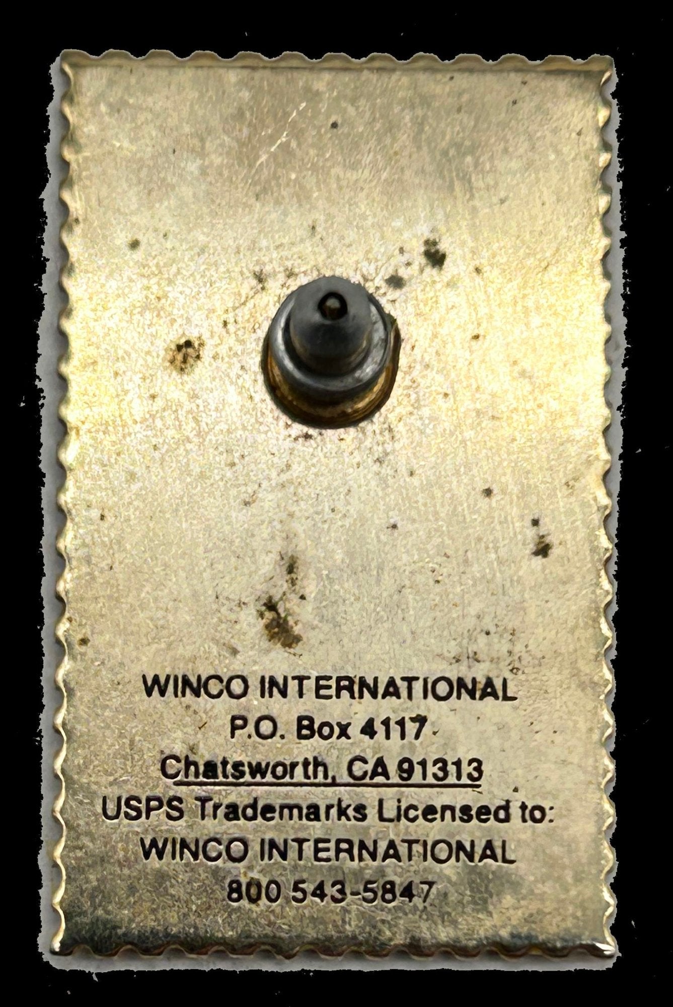 This lapel pin depicts New Hampshire's once famous Old Man of the Mountain 25 cent stamp as issued by the USPS.