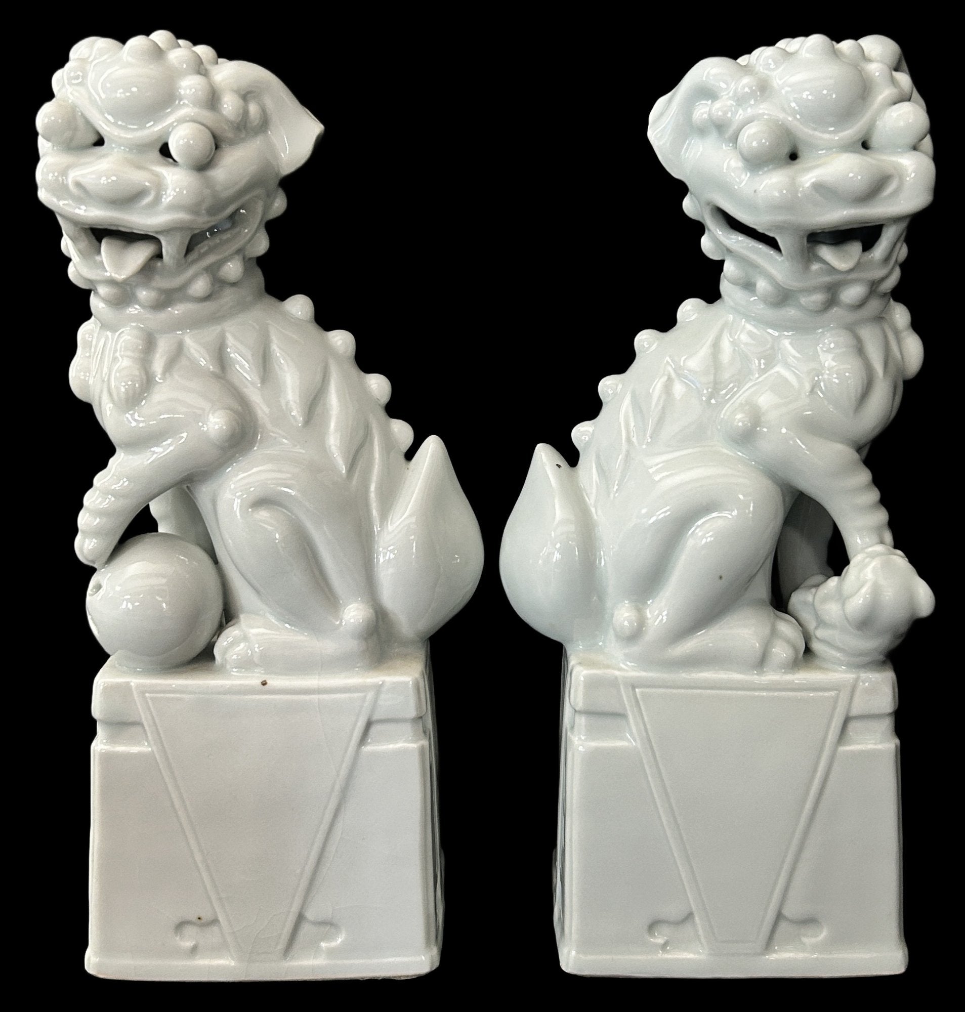 250219-34 Pair Blanc De Chine Foo Dogs, 9.5"H