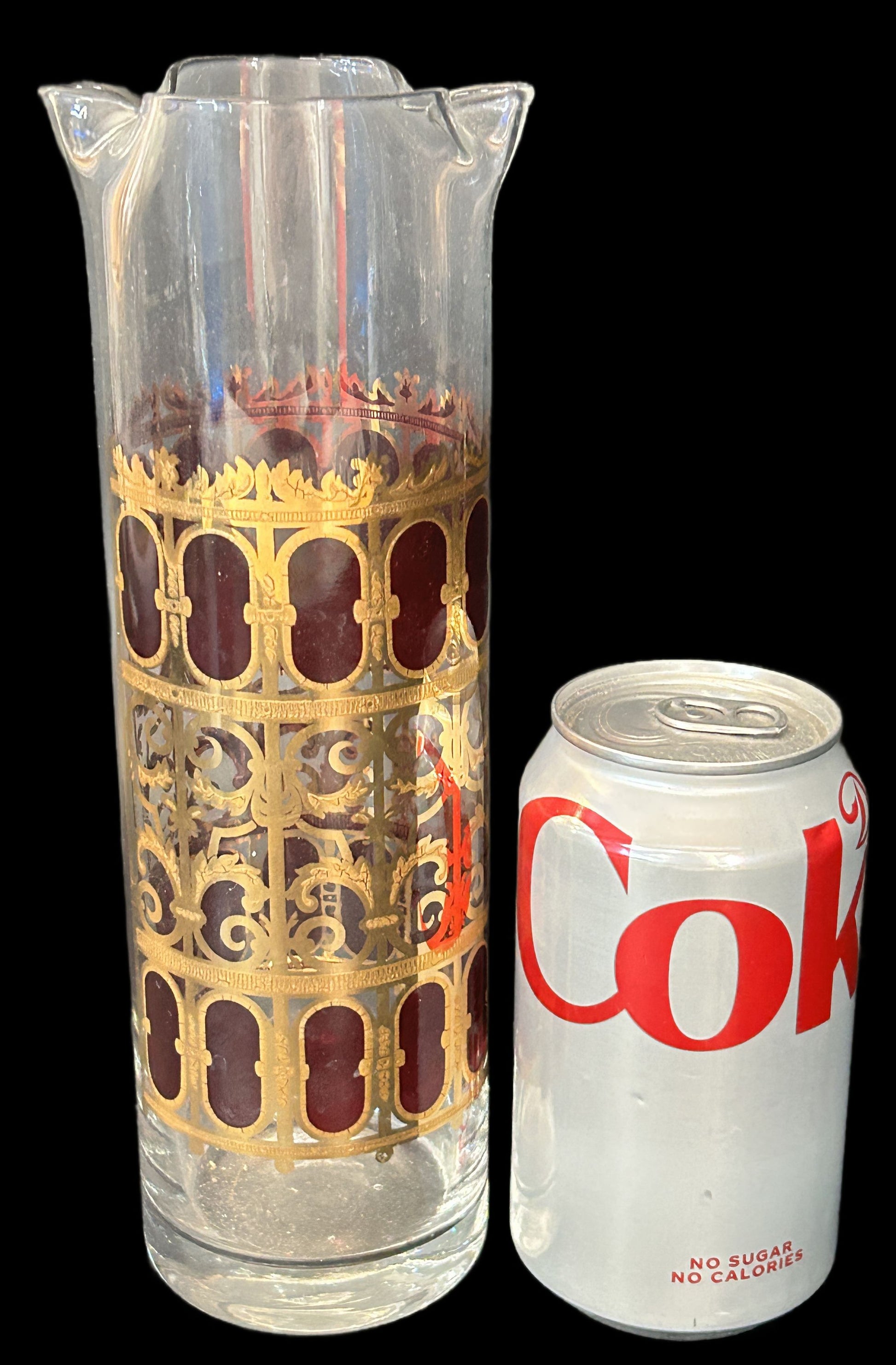 250305-3 MCM Culver Cranberry Scroll Martini Pitcher