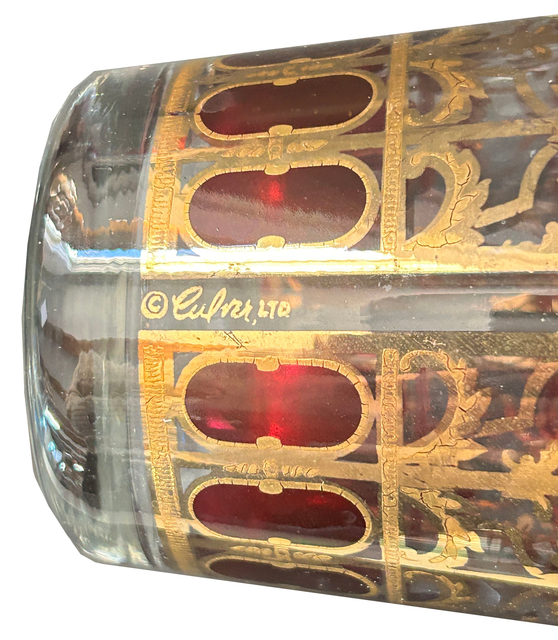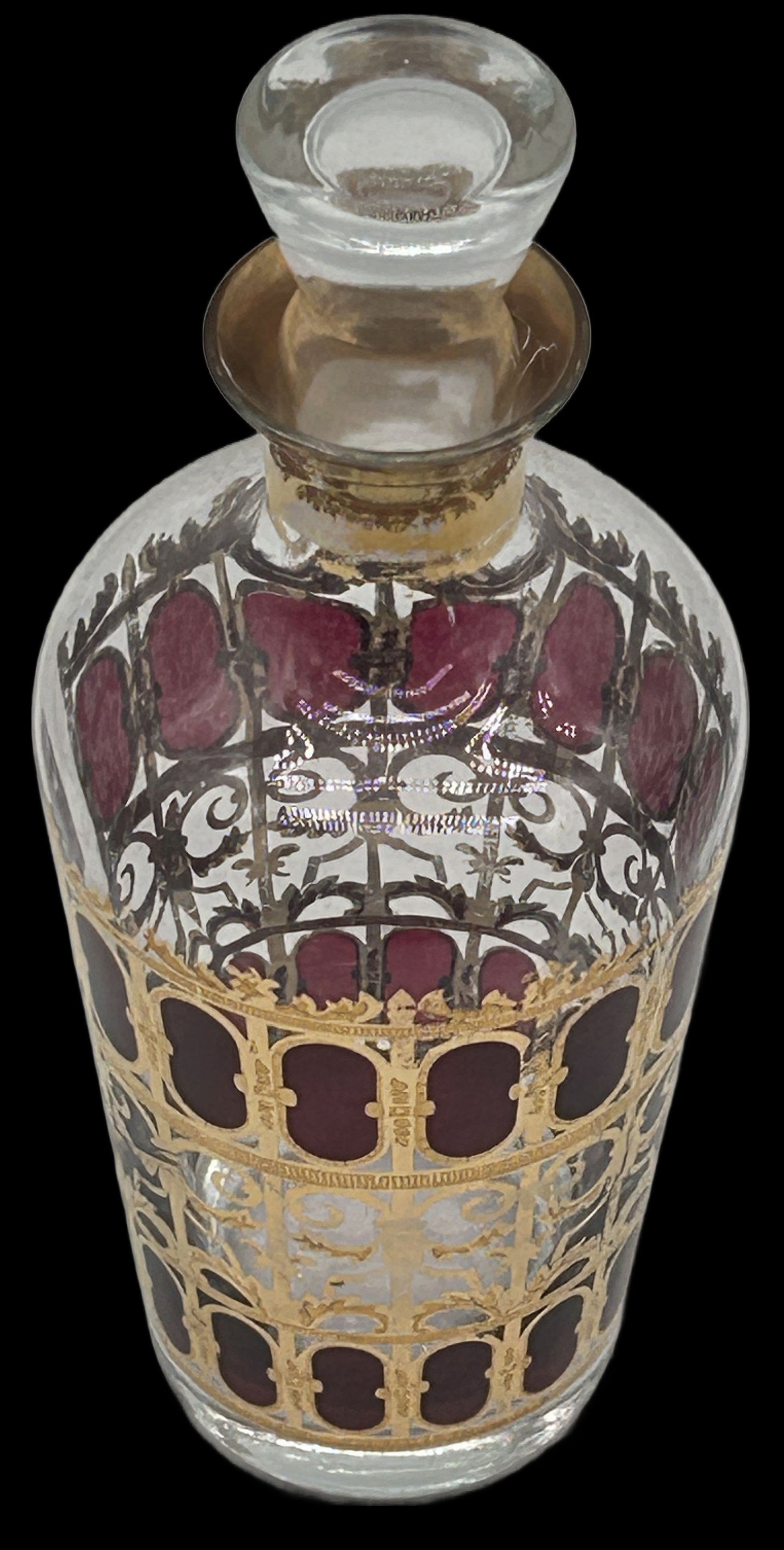 250305-4 MCM Culver Cranberry Scroll Decanter with Stopper