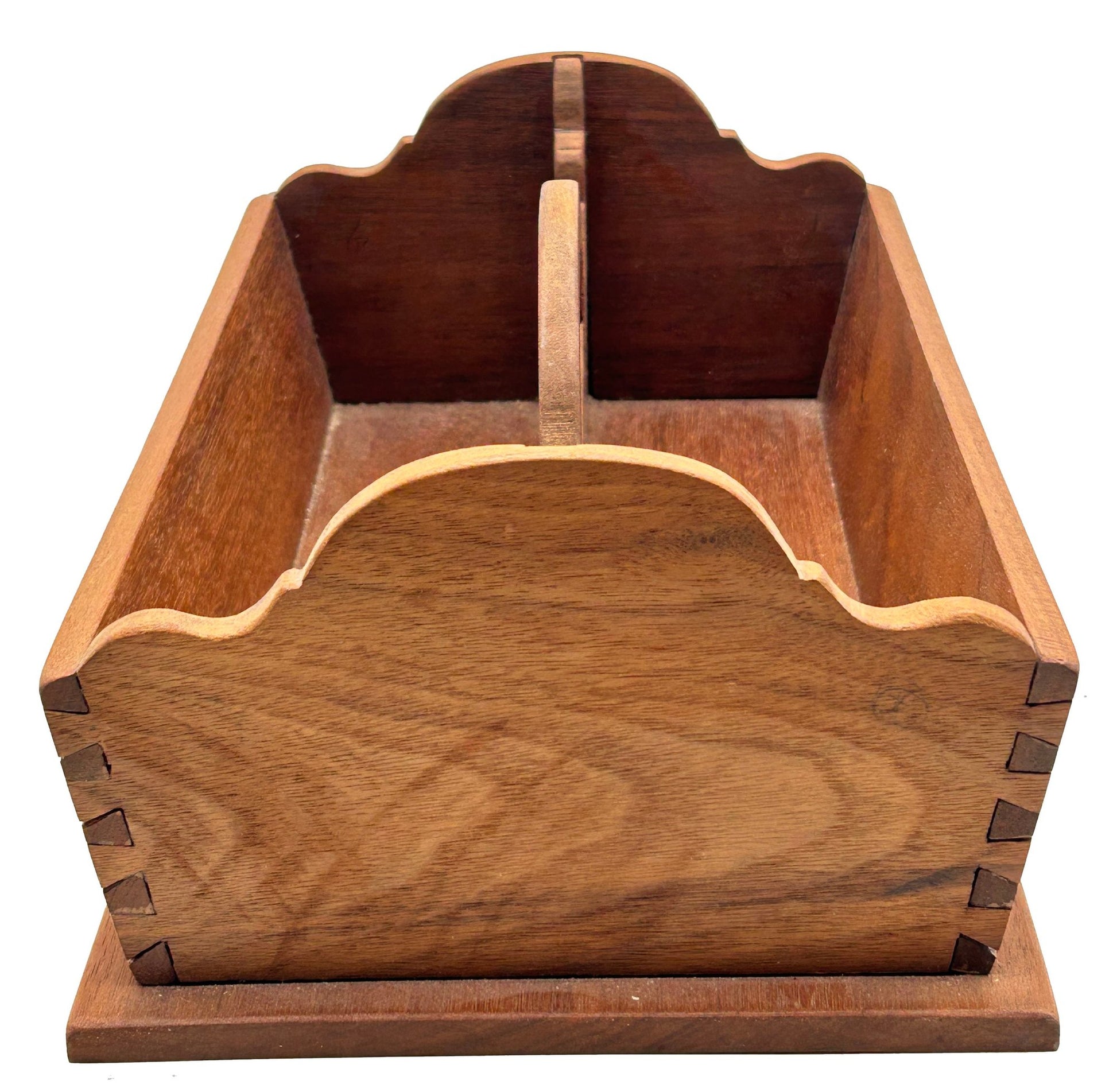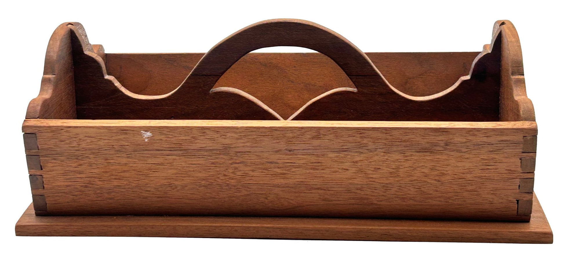 250326-8 Vintage Well Constructed Bench Made Primitive Style Utensil Caddy, 14" X 8.25" X 5"H