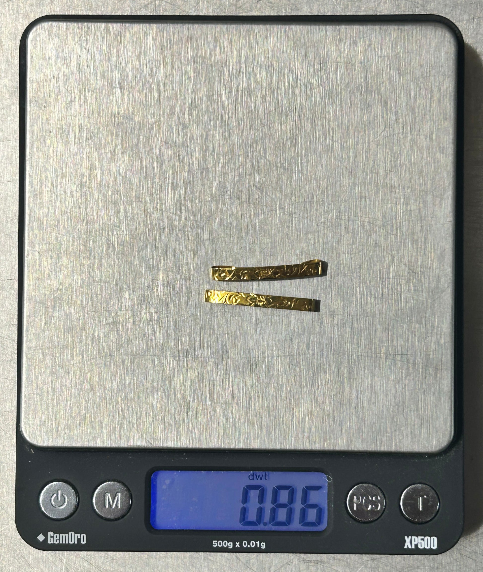 This pair of antique Edwardian collar pins are 10k yellow gold and weigh 0.86 dwt.