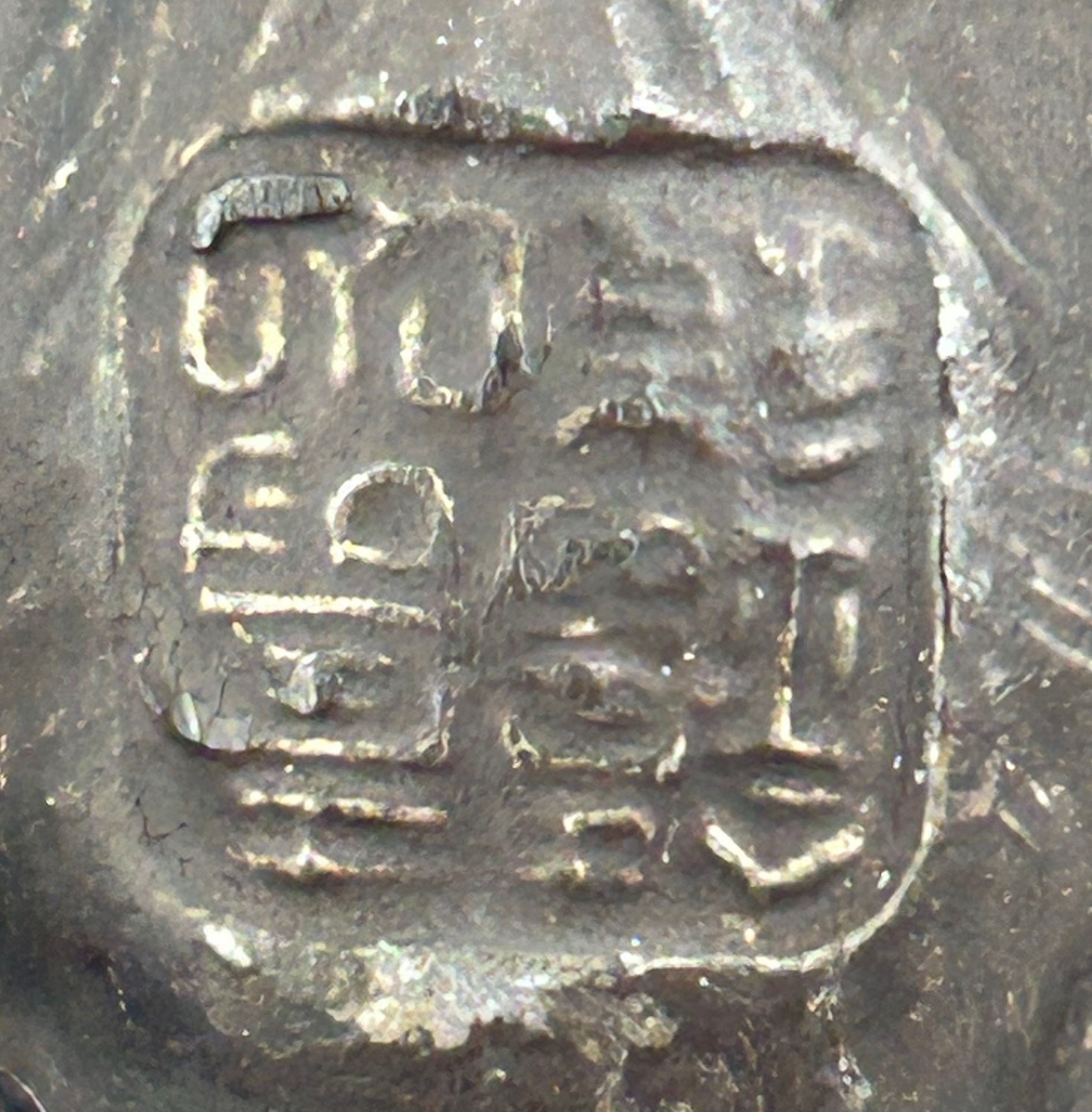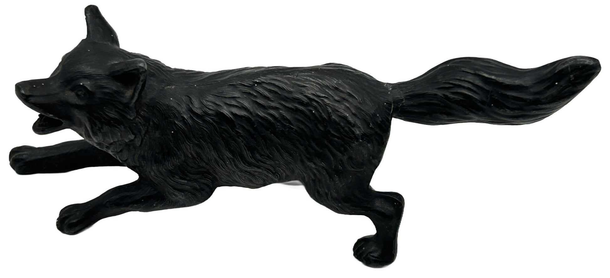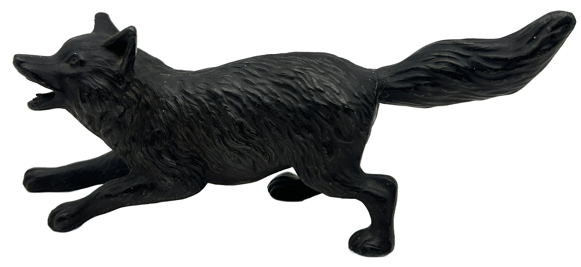This wonderful solid cast fox figurine has a cartouche on the verso.