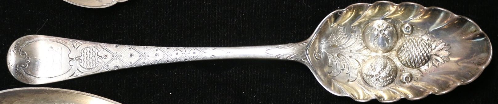 This antique sterling berry spoon has traditional English sterling hallmarks.