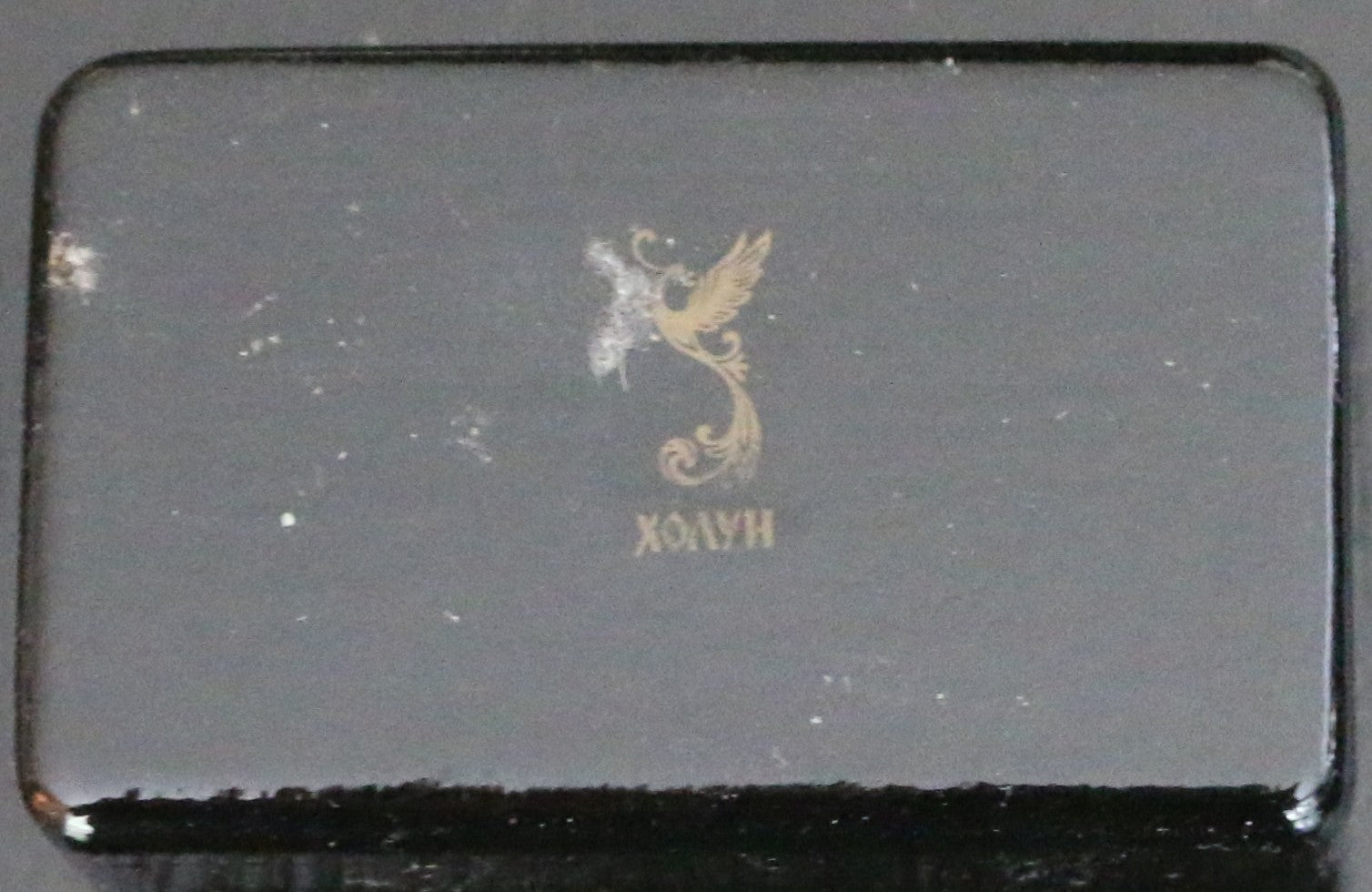 This gorgeous Russian black lacquered and enameled trinket box features Grandfather Mazay and The Hares.