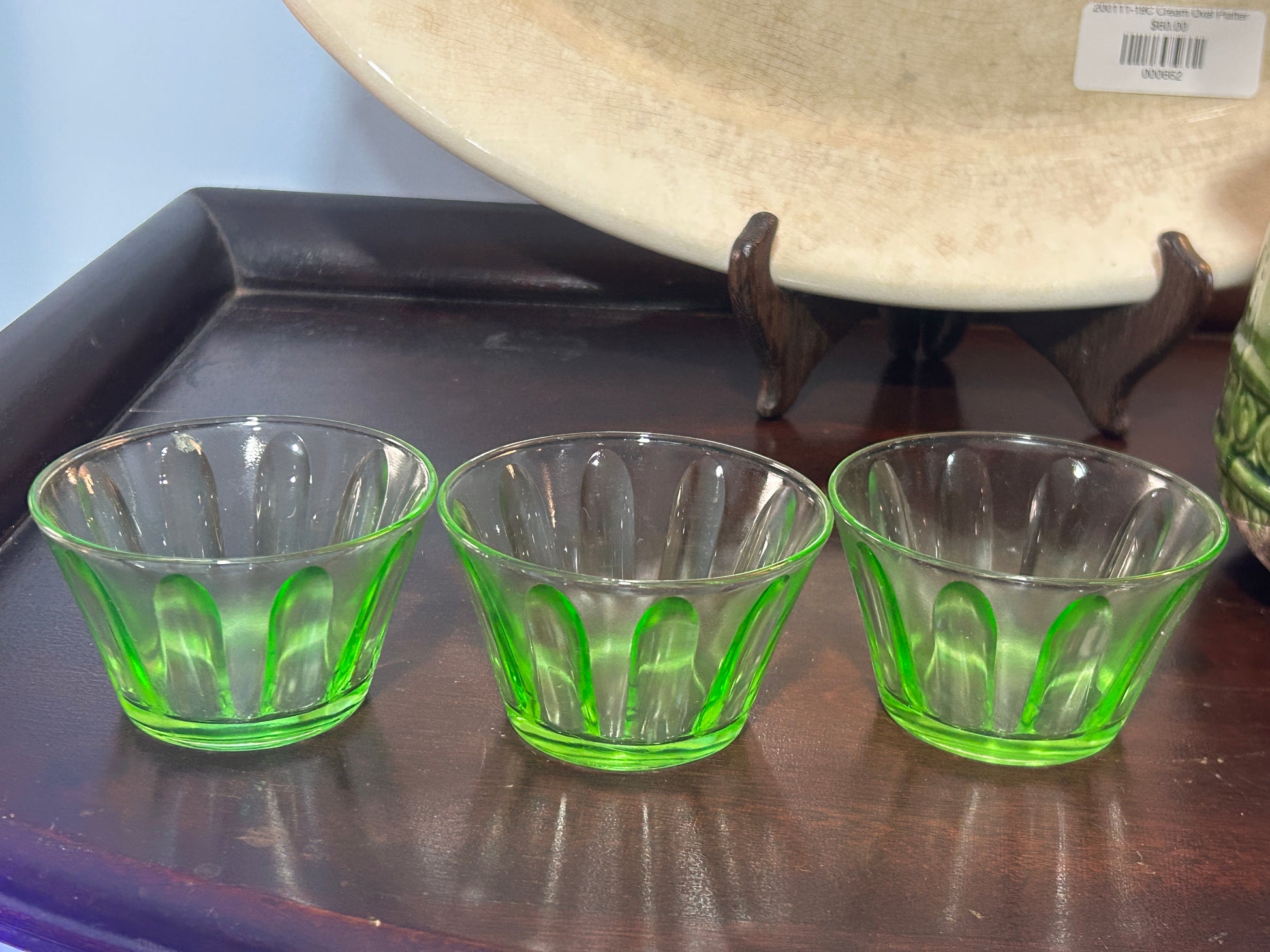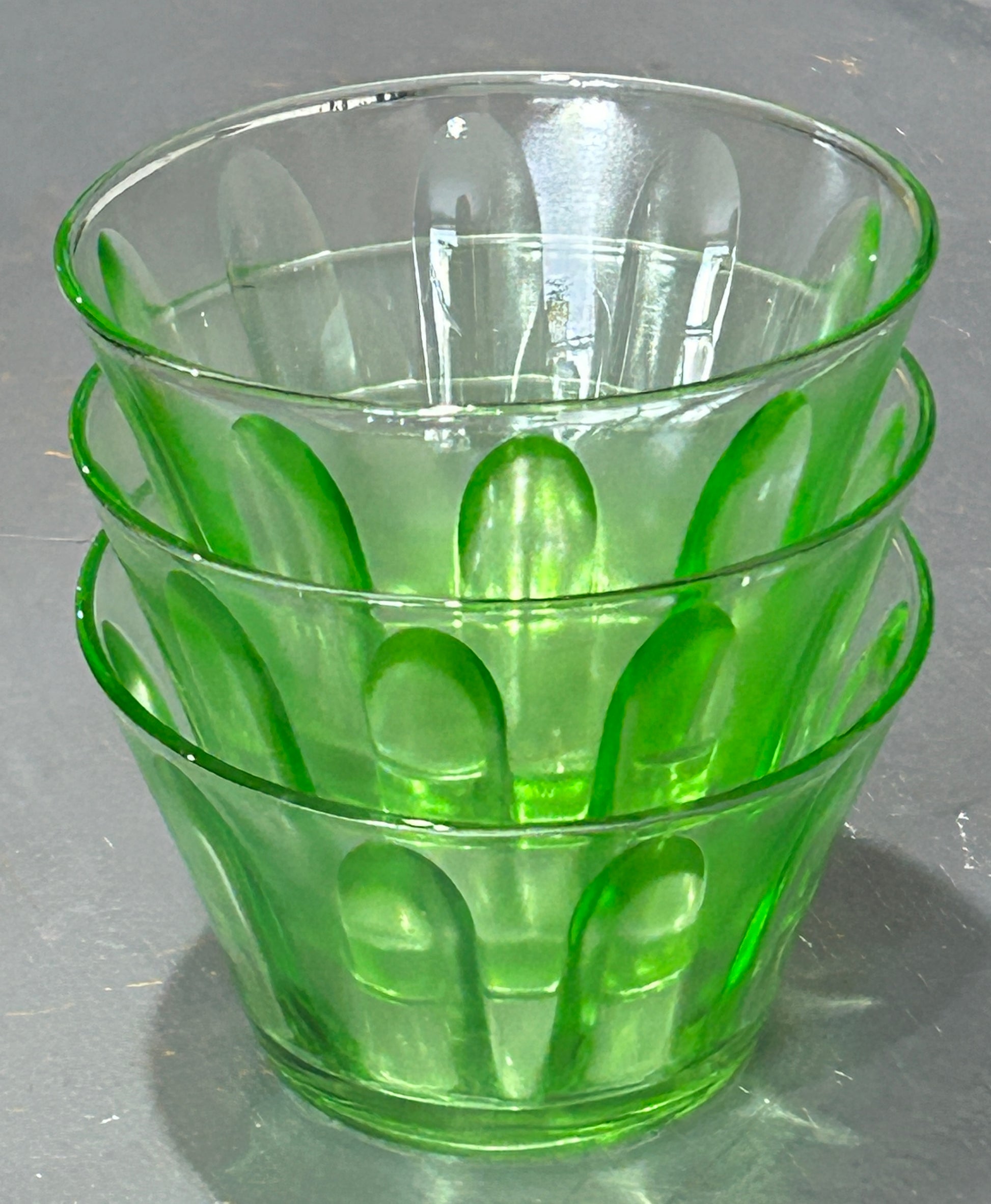 This is a depression era Hazel-Atlas green uranium glass fluted custard cup. No chips or cracks. Price is for each.