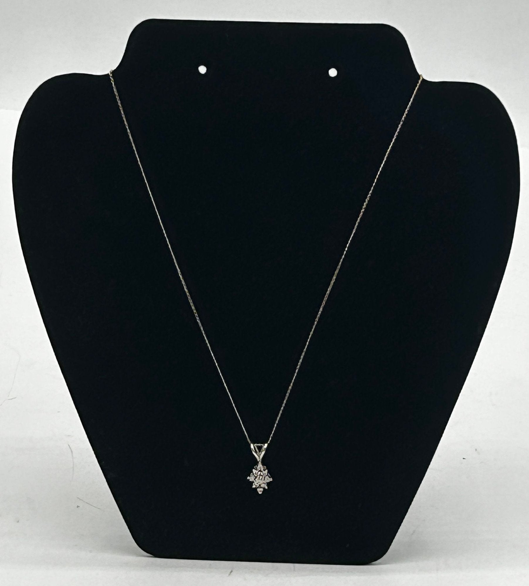14K white gold 9-diamond cluster pendant on 16" chain.