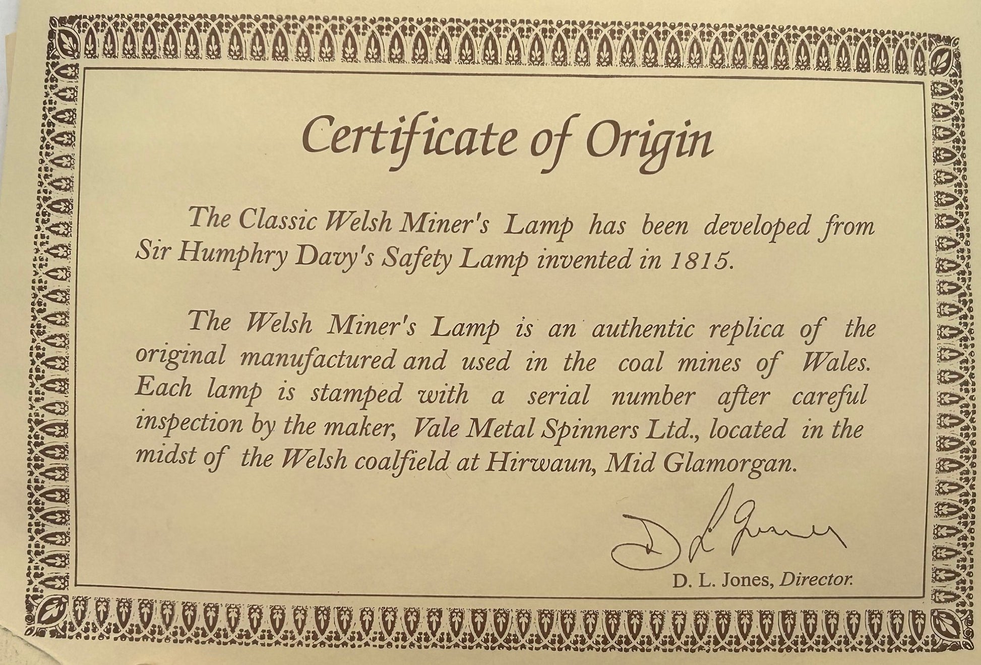 This vintage Welch brass miner's safety lamp was made to hang in coal mines. It is in its original packaging tube and comes with a Certificate of Origin and the story of The Miner's Lamp. The cylinder stands 11"H.