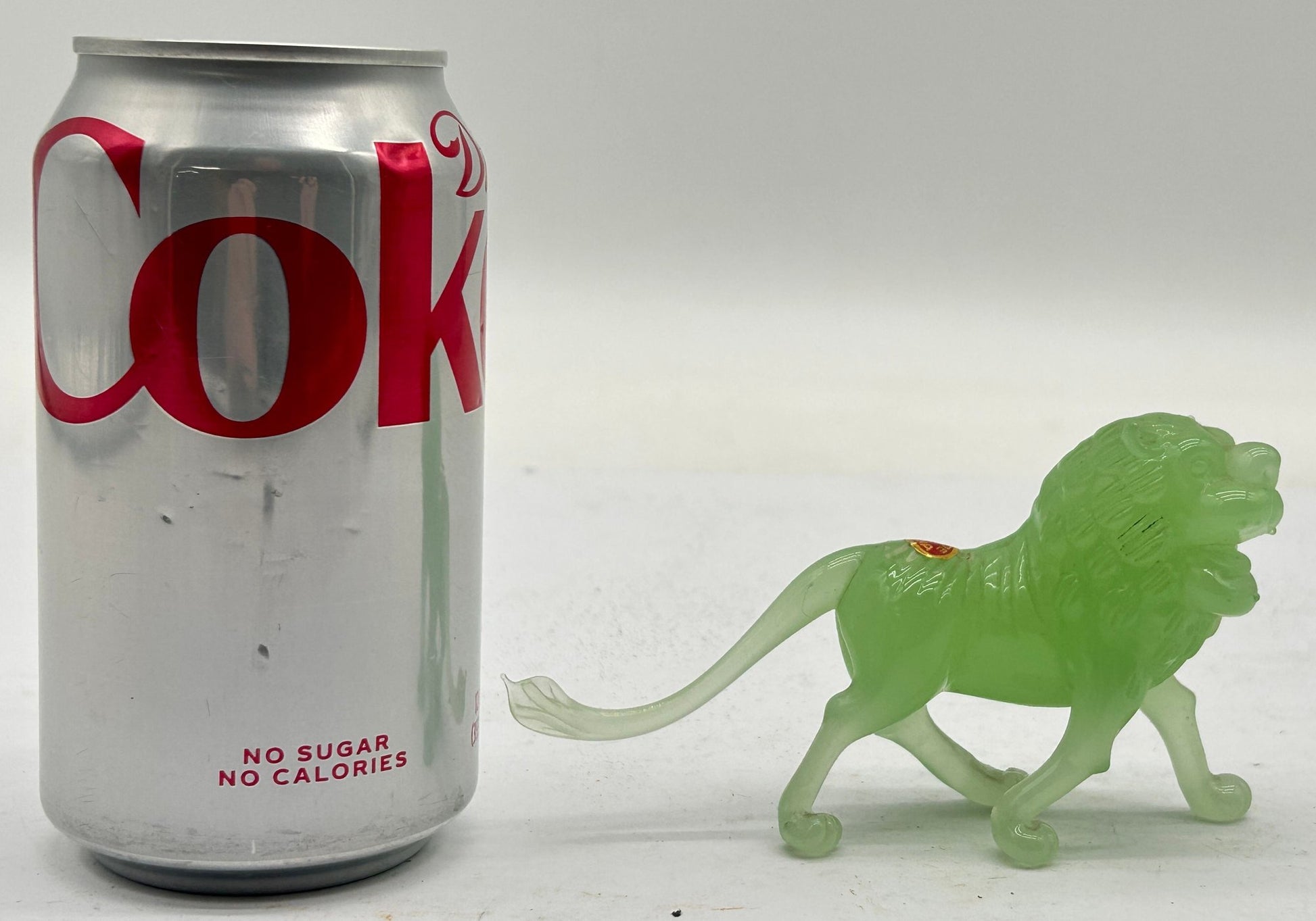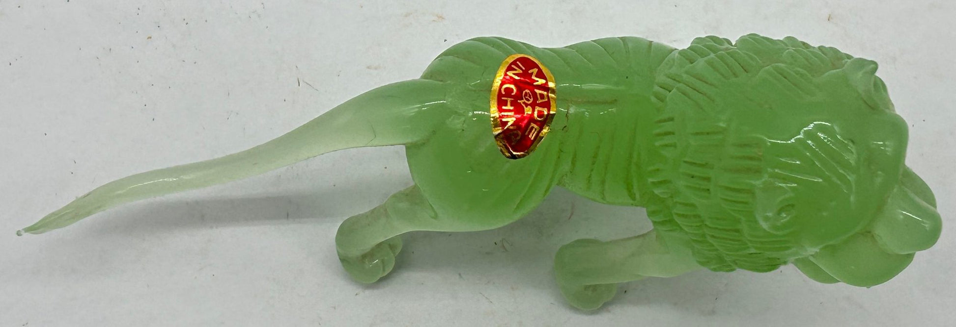 This carved jade figurine of a stately lion is proudly standing on a custom rosewood stand.