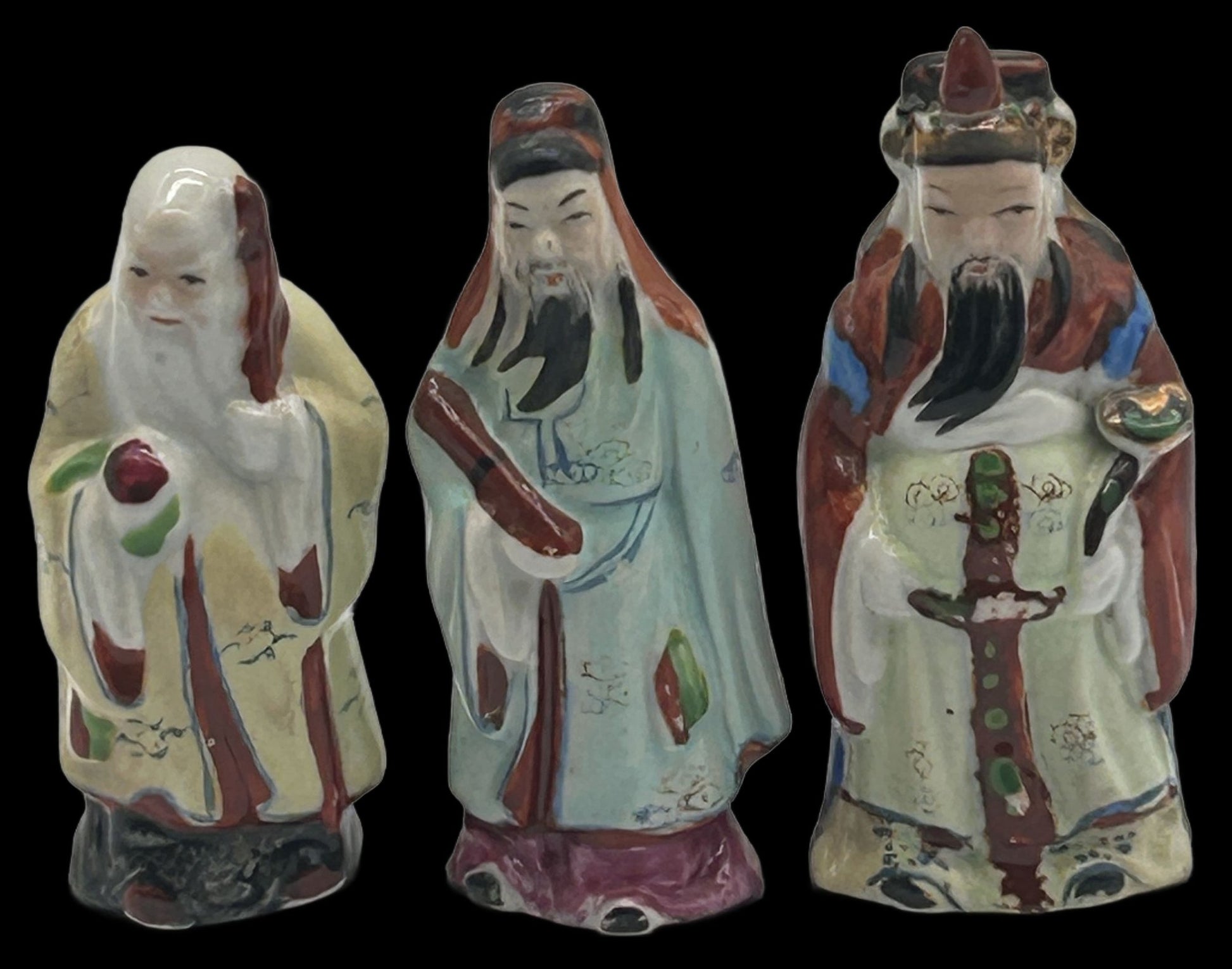 This is a set of three pieces of Chinese god figurines: Fortune, Prosperity and Longevity.