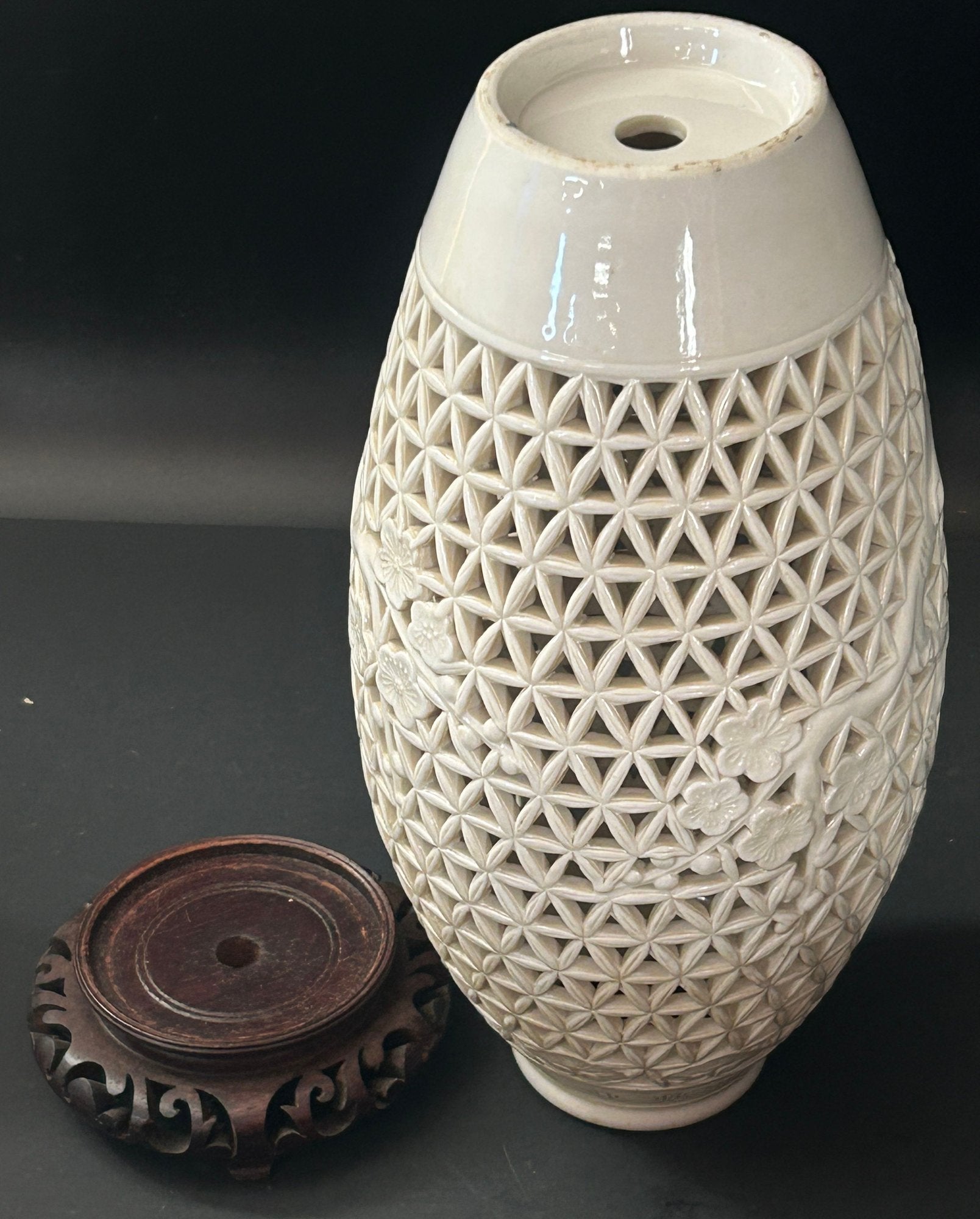 251210-31 Chinese Blanc De Chine Reticulated Vase