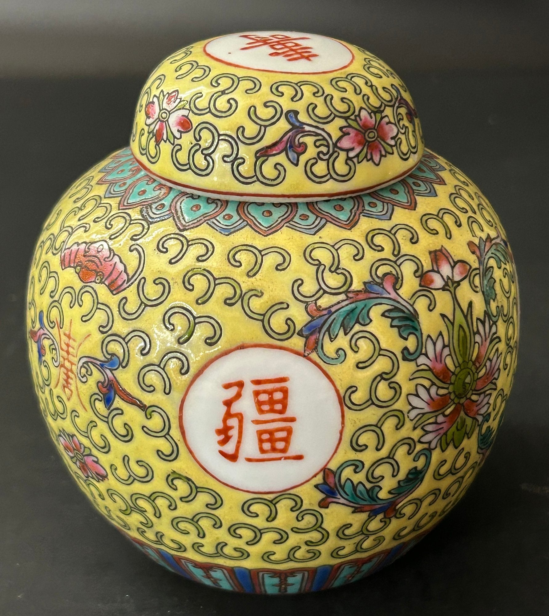This is a pair (2 pcs) traditional Chinese yellow Famille Jaune lidded ginger jar. No chips or cracks.