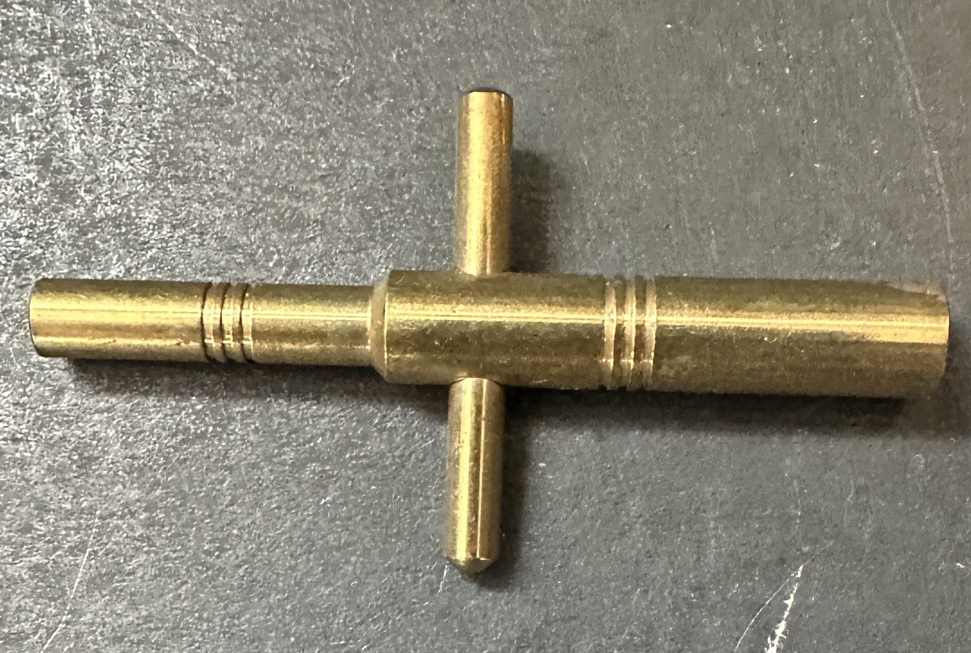 This stunning brass, beveled glass and enameled miniature carriage clock with key present. Made in England. 6" high with handle. Glass top window to view operating mechanism.