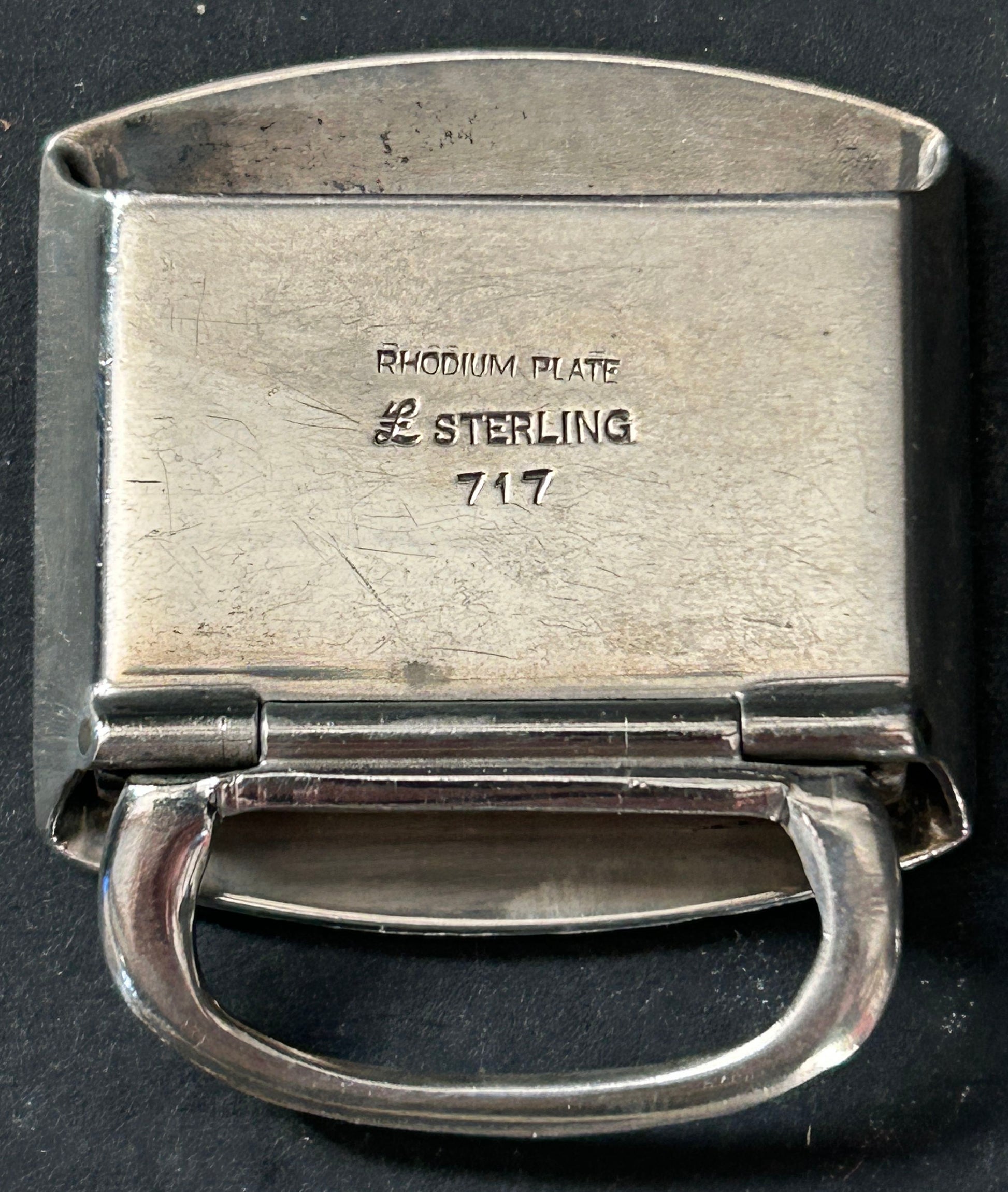 This vintage ladies belt buckle is .925 sterling silver and bears the monogram "LMT".