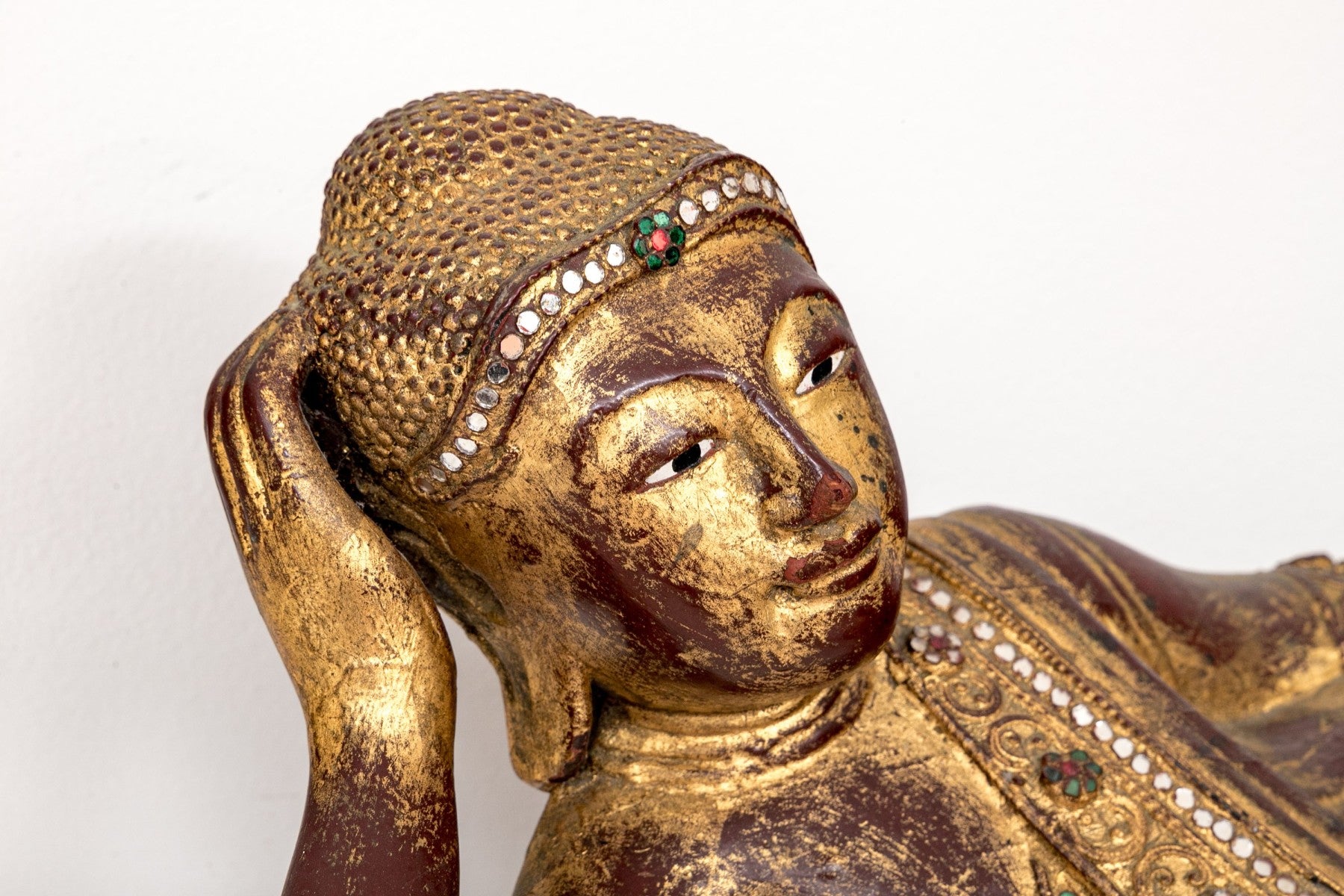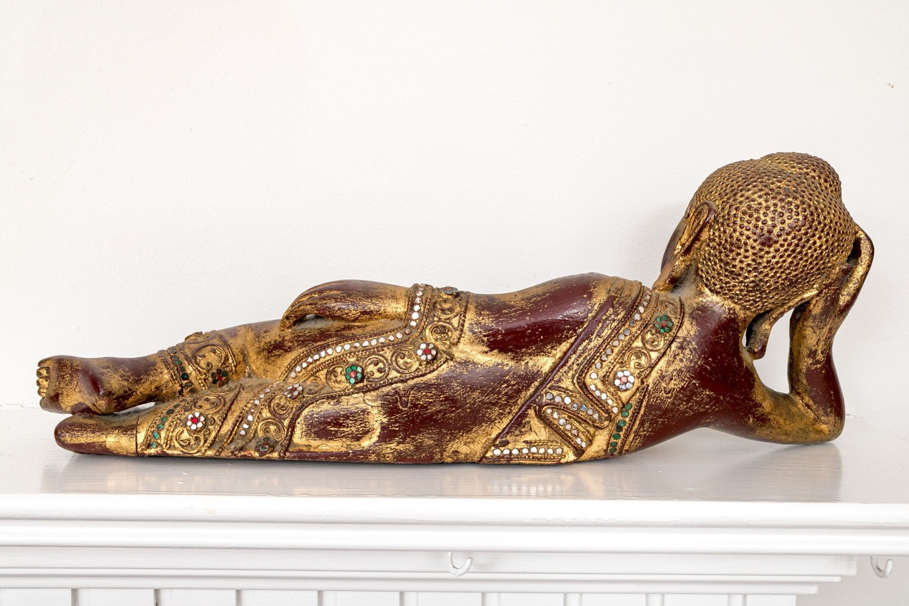 Antique carved and gilt wooden reclining buddha,