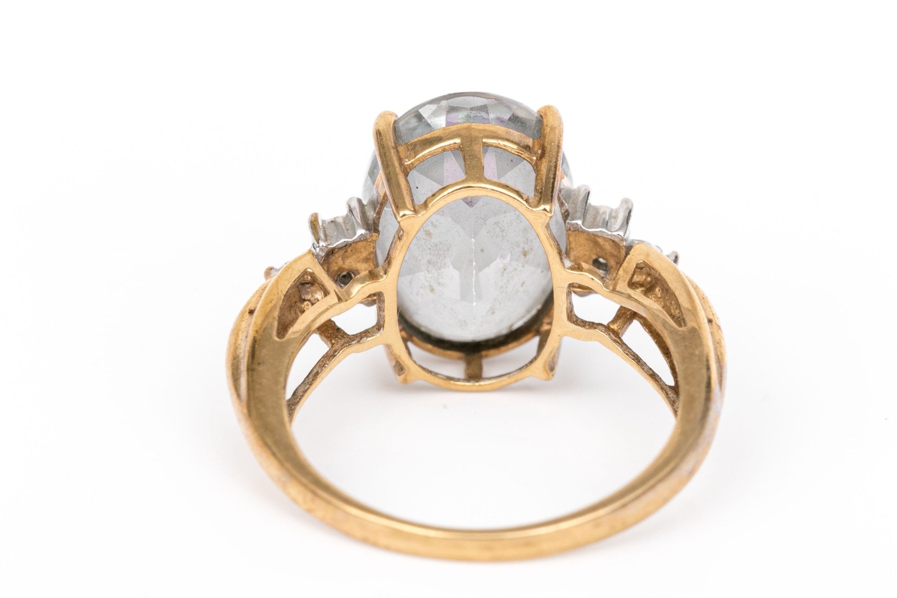 0k yellow gold striking oval mystic topaz and accent diamond ring, size 7